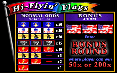 MAIN SCREEN > This single-line game will make customers want to stand up and salute! Army, Navy, Air Force and Marine flag symbols available. |